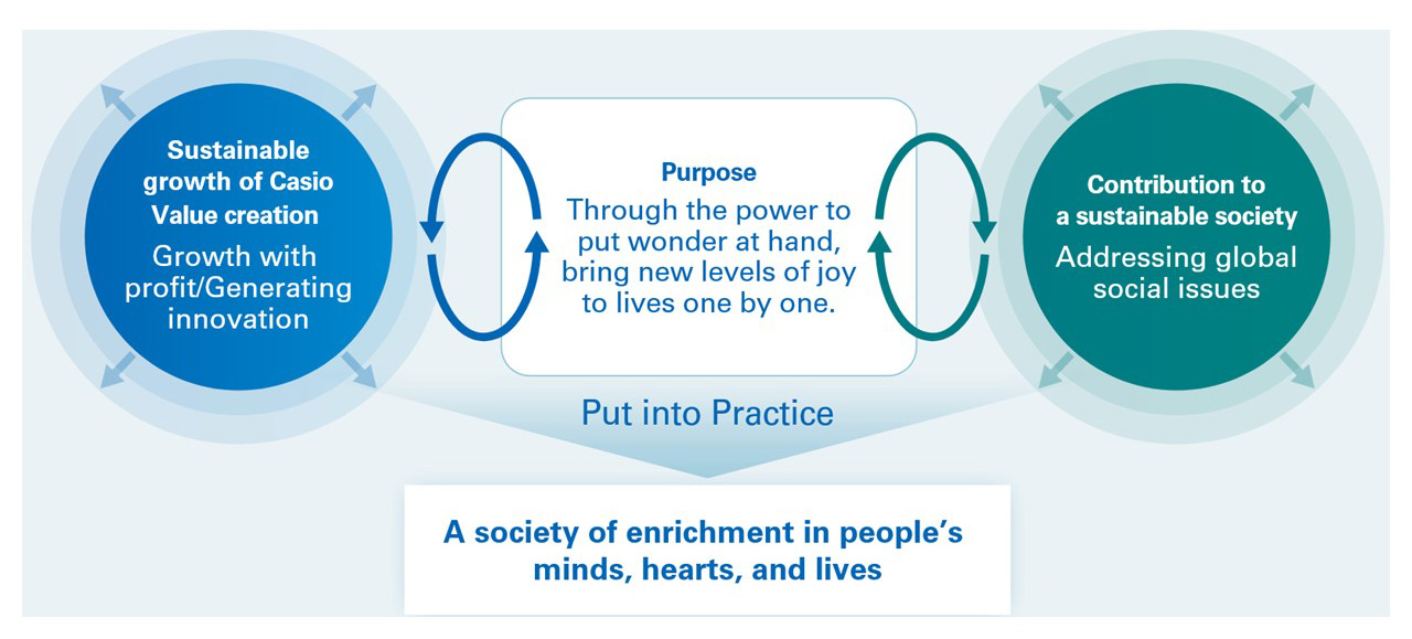 Mindful of its corporate creed of Creativity and Contribution, Casio has, since it was first founded, been engaged in the challenge of stimulating new needs and thereby bringing new value to the world. In 2024, to supplement our corporate creed, we set out a statement of our Purpose and Values indicating the path we need to follow.