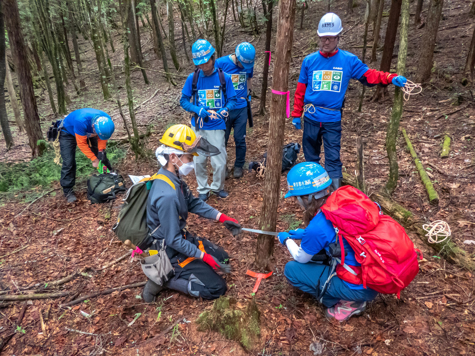 The Tokyo Metropolitan Government has been managing approximately 25,000 hectares of water source forest in the area straddling the border with Yamanashi Prefecture since the Meiji Era. The Casio Forest comprises 2.46 hectares of the area and our voluntary staff can contribute to the management through on-site work three times a year, but their involvement is confined to a small portion. Nevertheless, the area is expansive enough to allow for various work experiences and provides an effective scope for understanding the challenges surrounding forest conservation.