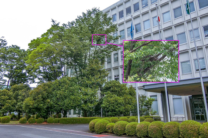 At the Hamura R&D Center, in 2022 Japanese sparrowhawks, a bird of prey that is an endangered species, nested in a zelkova tree on the premises. The sparrowhawks had previously been observed nesting in Musashino Park to the west of the center, but it seems that the birds changed their nesting location to the center in 2022.