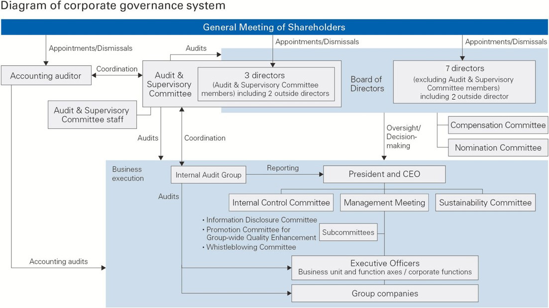 In fiscal 2021, Casio amended its existing CSR implementation system and established the Sustainability Committee. The Committee discusses important sustainability issues, including climate change, working closely with the Management Meeting. It also ensures that heads of each business and each functional headquarters fully discuss these issues, and then reports the results to the Board of Directors. Casio now has a system in place for appropriate oversight of management decision-making and monitoring of progress related to important sustainability issues.