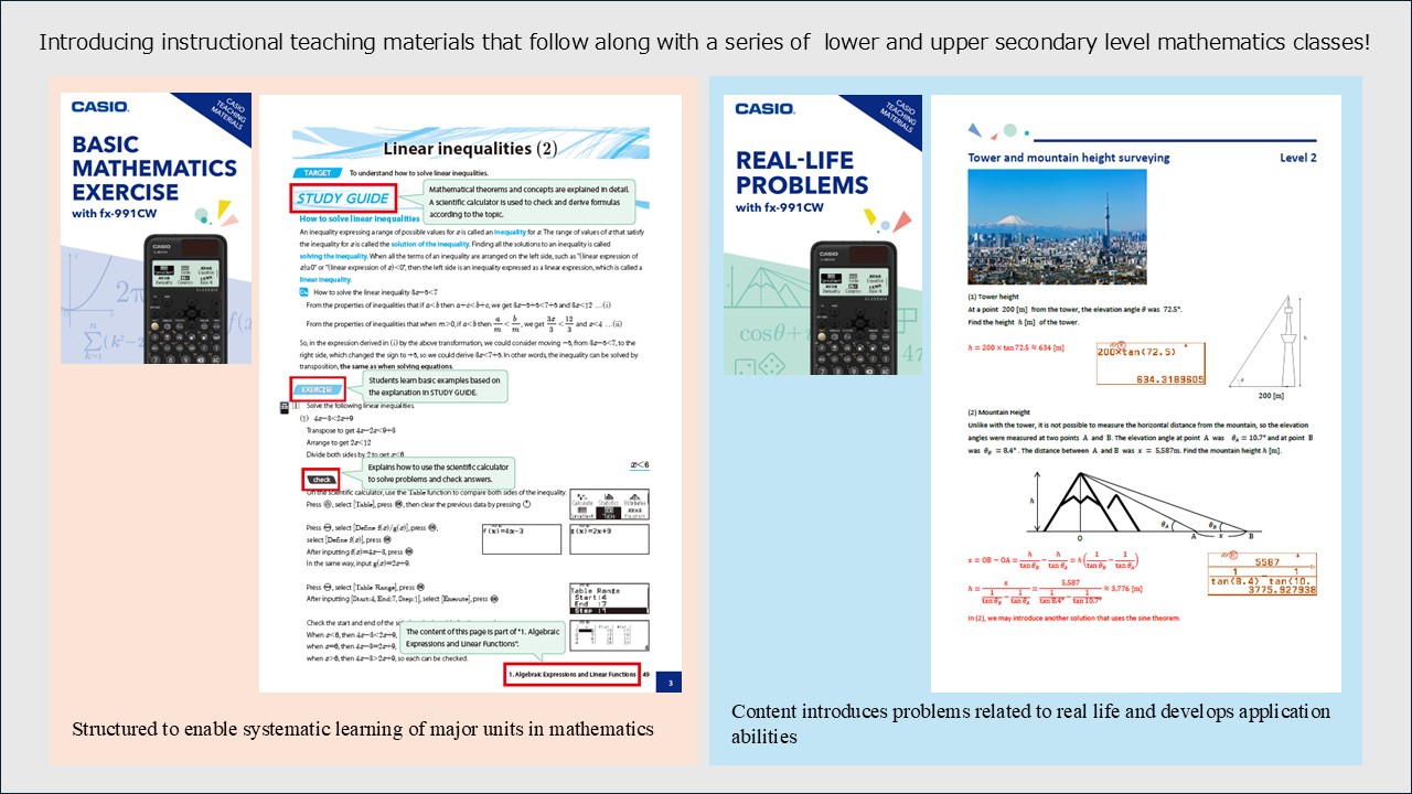 Casio original teaching materials supporting mathematics classes that use scientific calculators