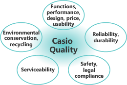 In recent years, there has been growing public concern over product quality and safety. Casio remains keenly aware that it must do its very best for customers. Casio believes it can offer trust and peace of mind to customers by providing high-quality, exceptionally safe products.