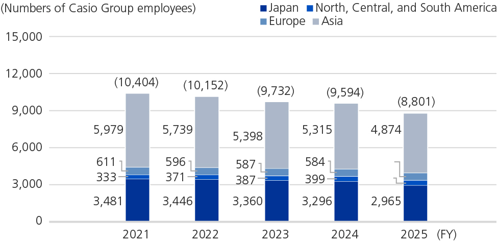 Number of Casio Group regular employees (global breakdown)