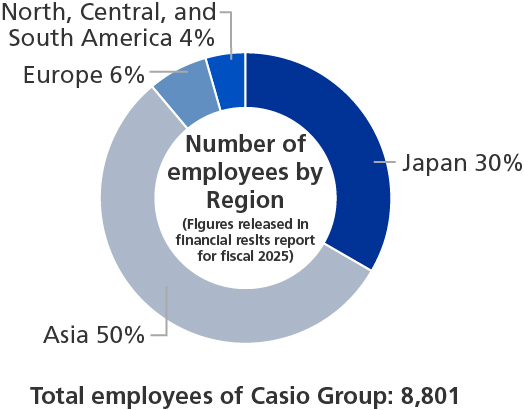 Casio has been implementing diversity and inclusion initiatives to create conditions where all employees can work enthusiastically and enjoy job satisfaction, regardless of gender, nationality, age, and disability, to create innovation in an environment that brings together diverse values.